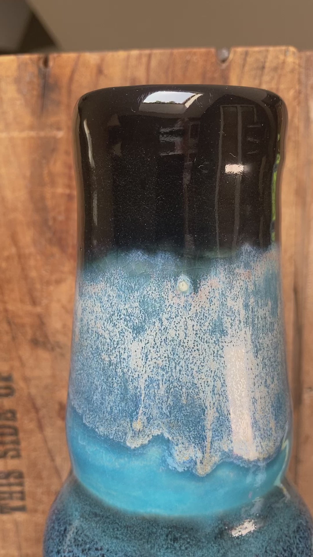The shades of blue glazes on this ceramic bong compliment the graphic perfectly - It looks like a night time sky.