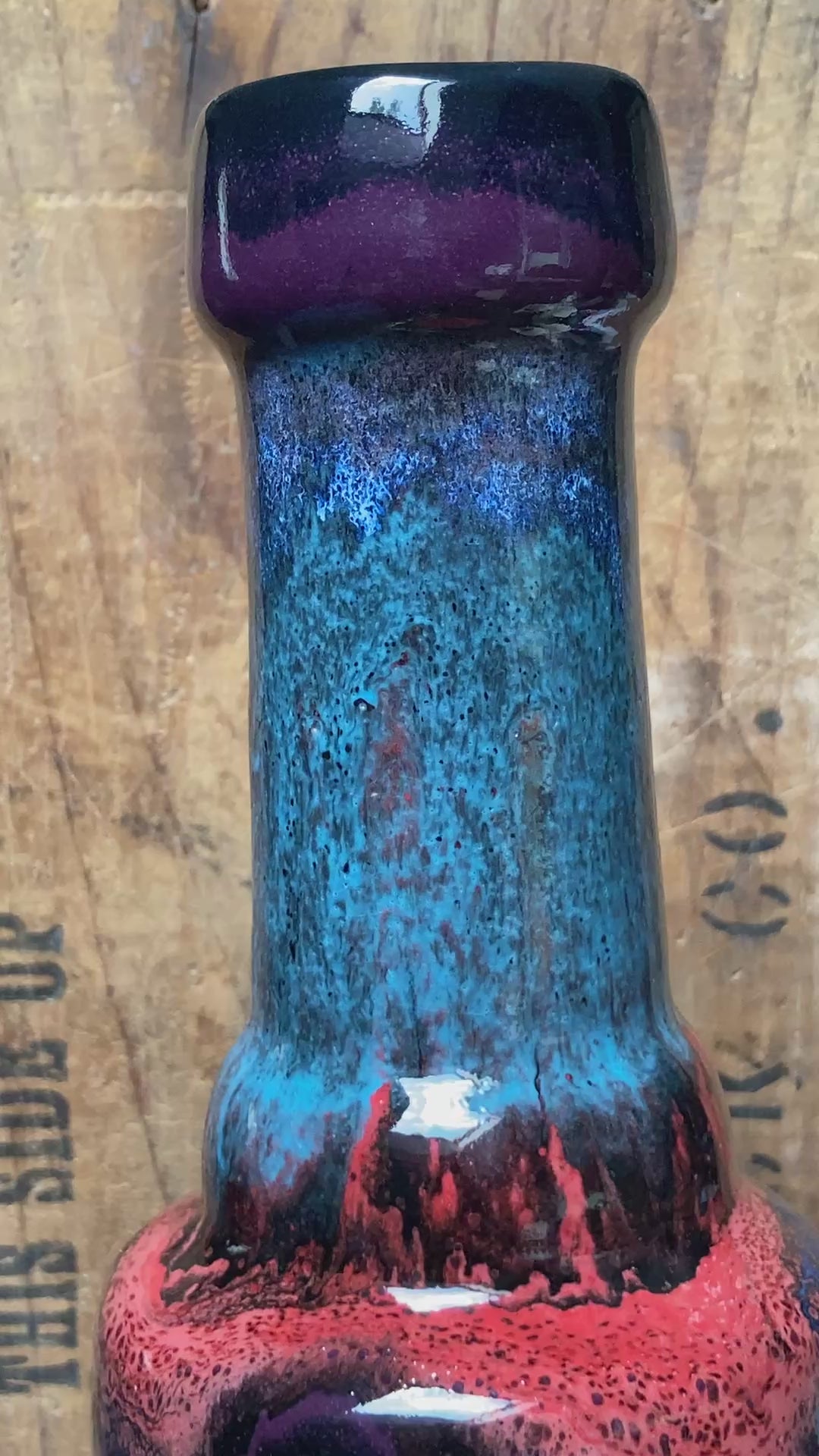 This isn’t just a bong, it’s a full blown legend. The moment you set eyes on it, you’re hit with a rush of intense, electric blue gloss glazes colliding with savage, lava hot reds and deep, midnight purples. Every drip and swirl is unpredictable and fierce, just like the smoke sessions this beast is built for.