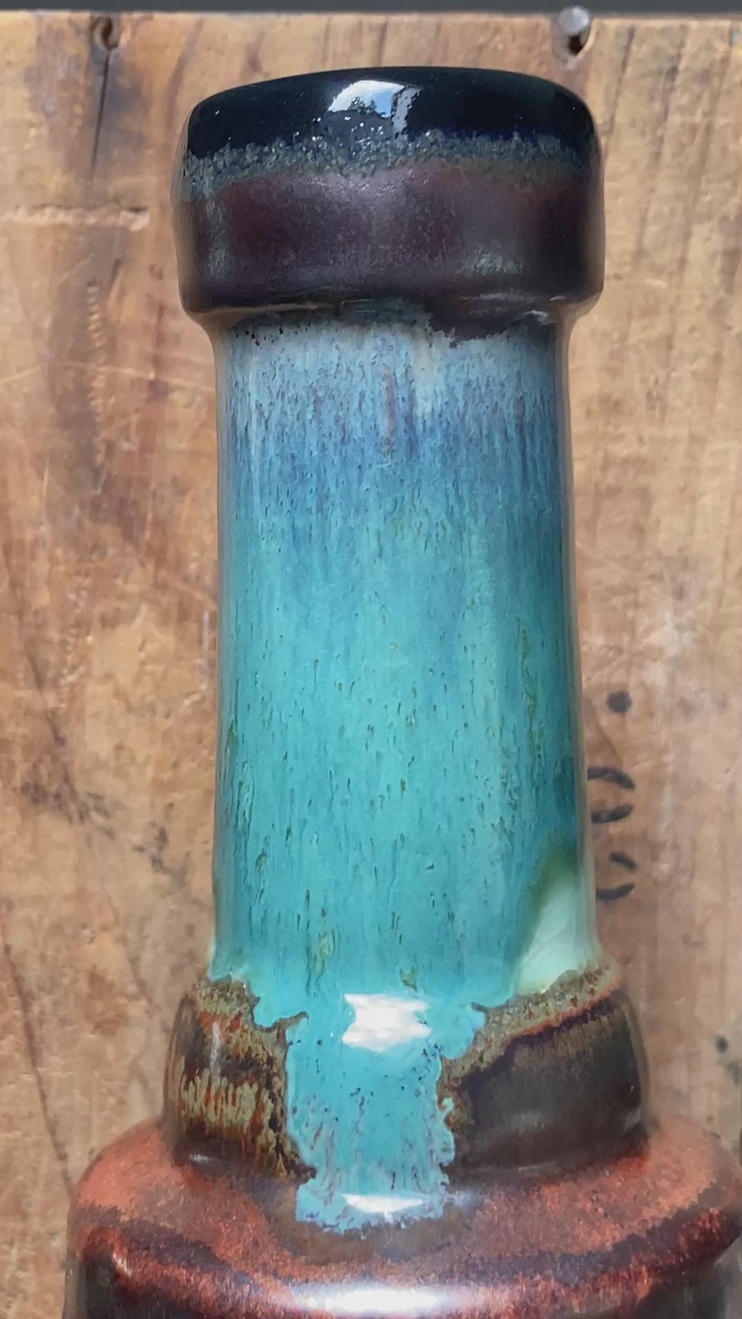 Brilliant turquoise and pale green glazes melt down the neck and body of this handmade ceramic bong, topped with our unmistakable antique copper for a finish worthy of a hero’s propeller. But the real action? It’s on the back, where a vintage comic style airplane barrels across a glowing, golden sky. The fuselage sports the “HIGH CLUB” insignia, and a healthy coat of weathered grit and grime makes this bird look like it’s seen a few sky high escapades.