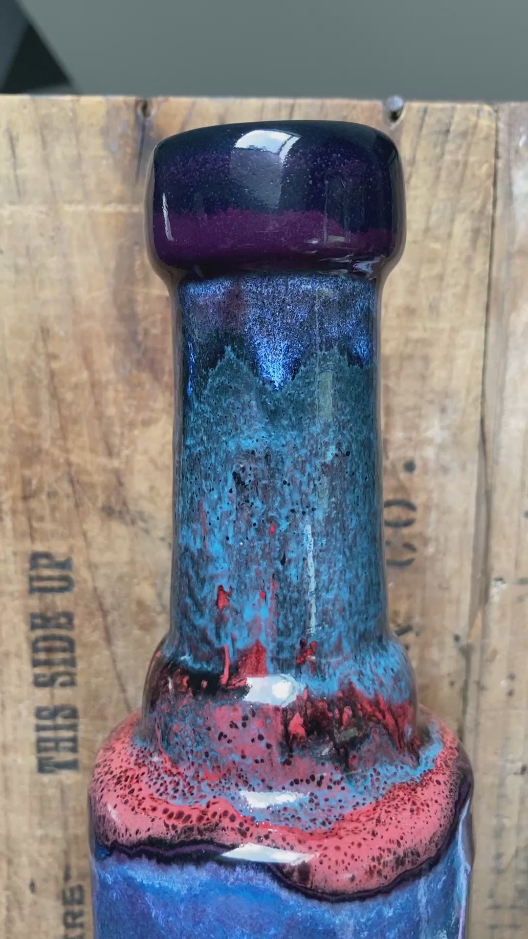 Unleash the power of the ancients! “The New Pyramids” ceramic bong is a portal to a world where mystery and energy collide. Glossy rivers of cobalt blue, fiery red, and electric purple race and swirl across the surface, pulsing with a life of their own. This piece doesn’t just sit on the shelf, it demands attention!